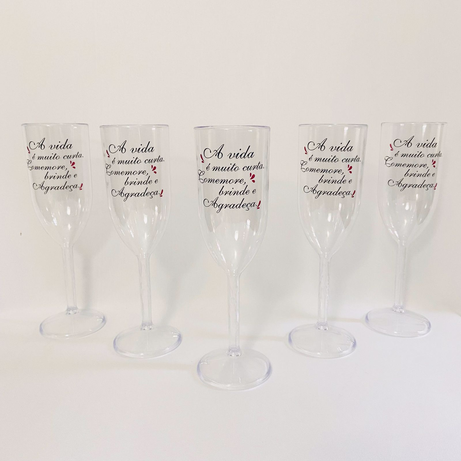 Taça champagne de acrílico transparente ou branca - venda por unidade - mínimo de 6 - com personalização na parte frontal da taça. Após o pagamento, enviar msg whatsapp para 61-992766210 com o arquivo da arte já pronta. Pedido mínimo de 6 (seis) unidades.